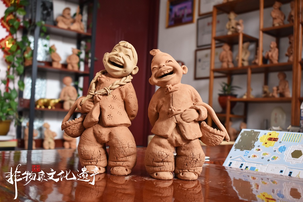 泥塑作品:提篮子的娃娃(非物质文化遗产)